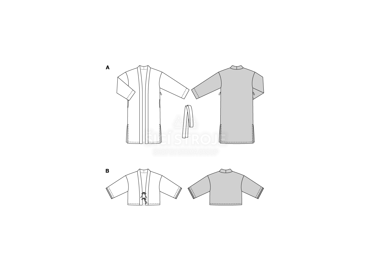 Strih Burda 5720 - Kabátik s opaskom, kimono, saténový kabátik, kardigan..