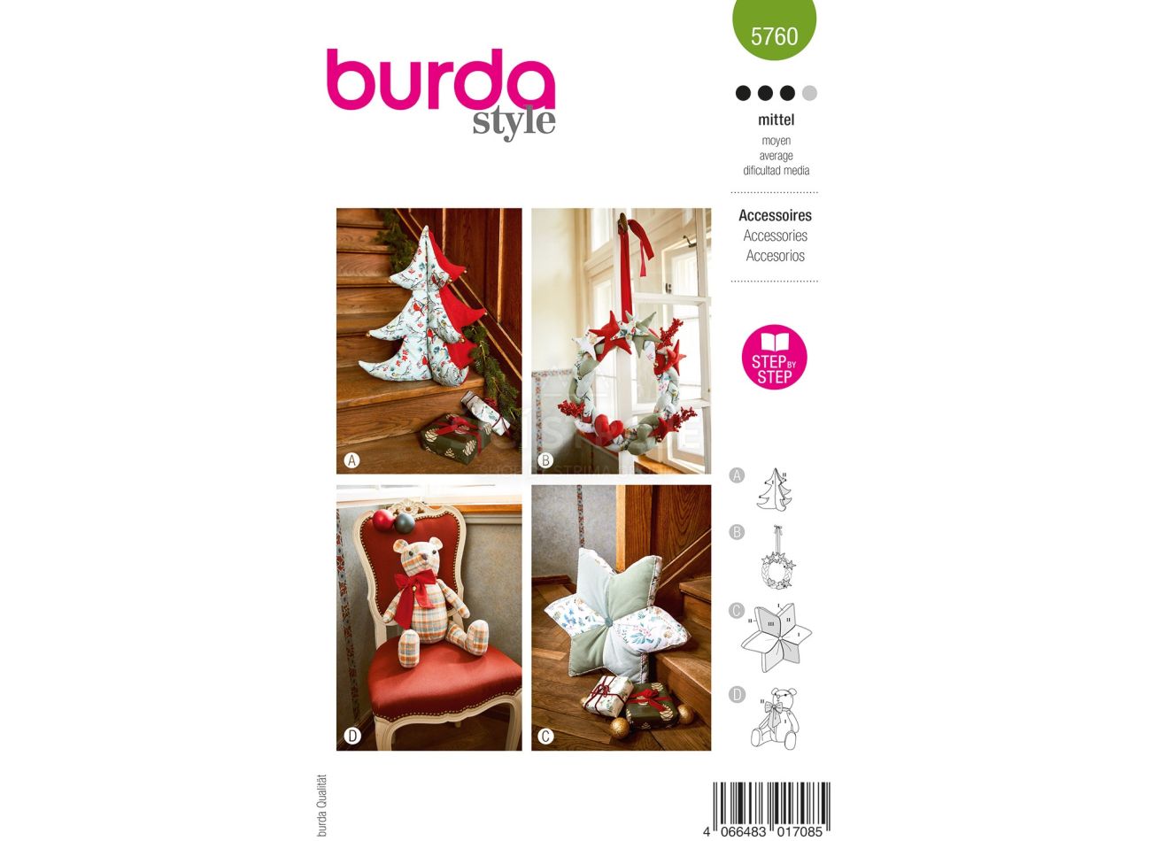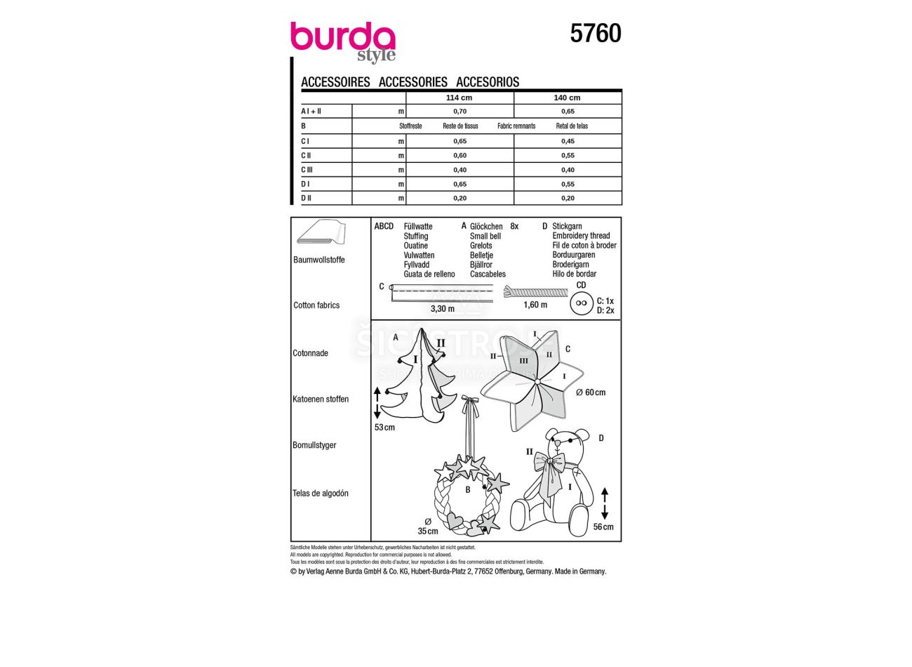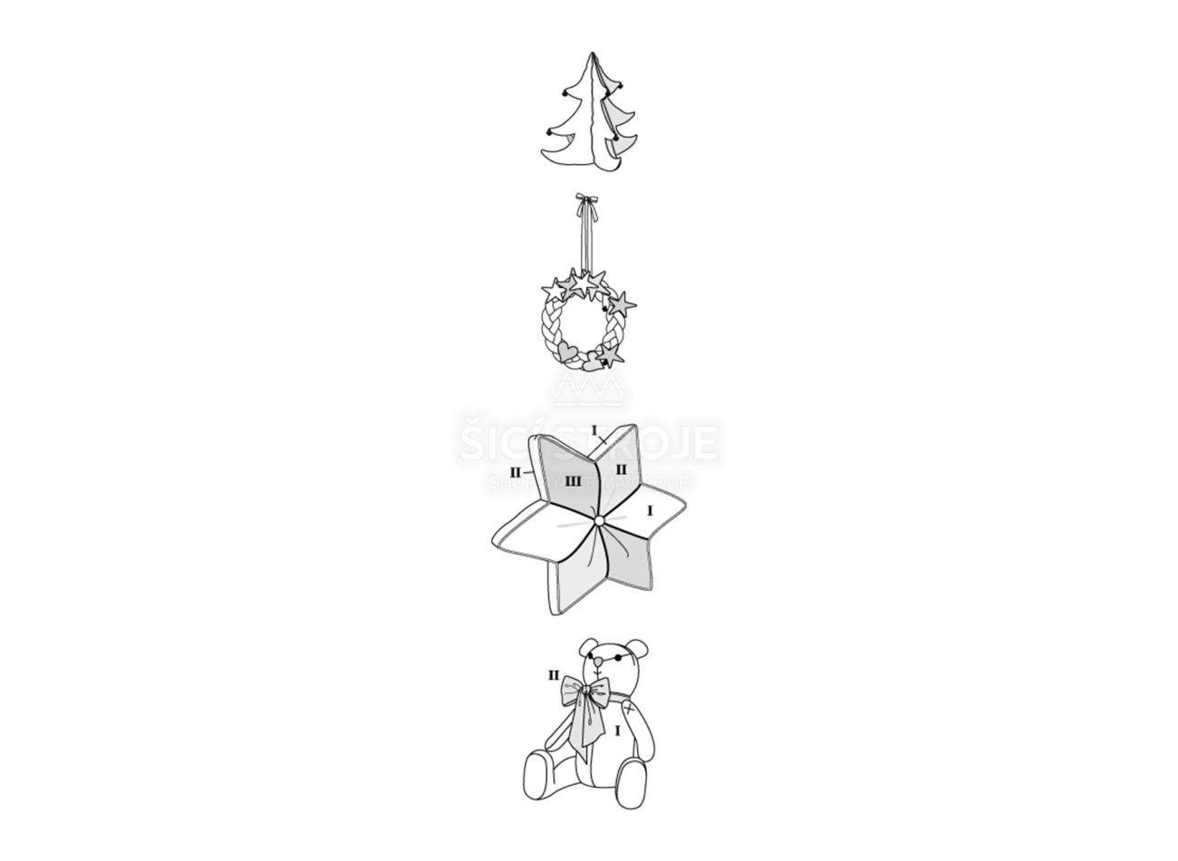 Strih Burda 5760 - Medvedík, vianočný stromček, vankúš a adventný veniec