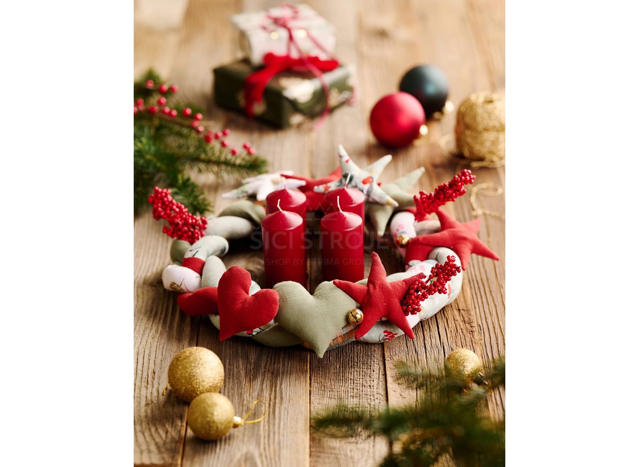Strih Burda 5760 - Medvedík, vianočný stromček, vankúš a adventný veniec..