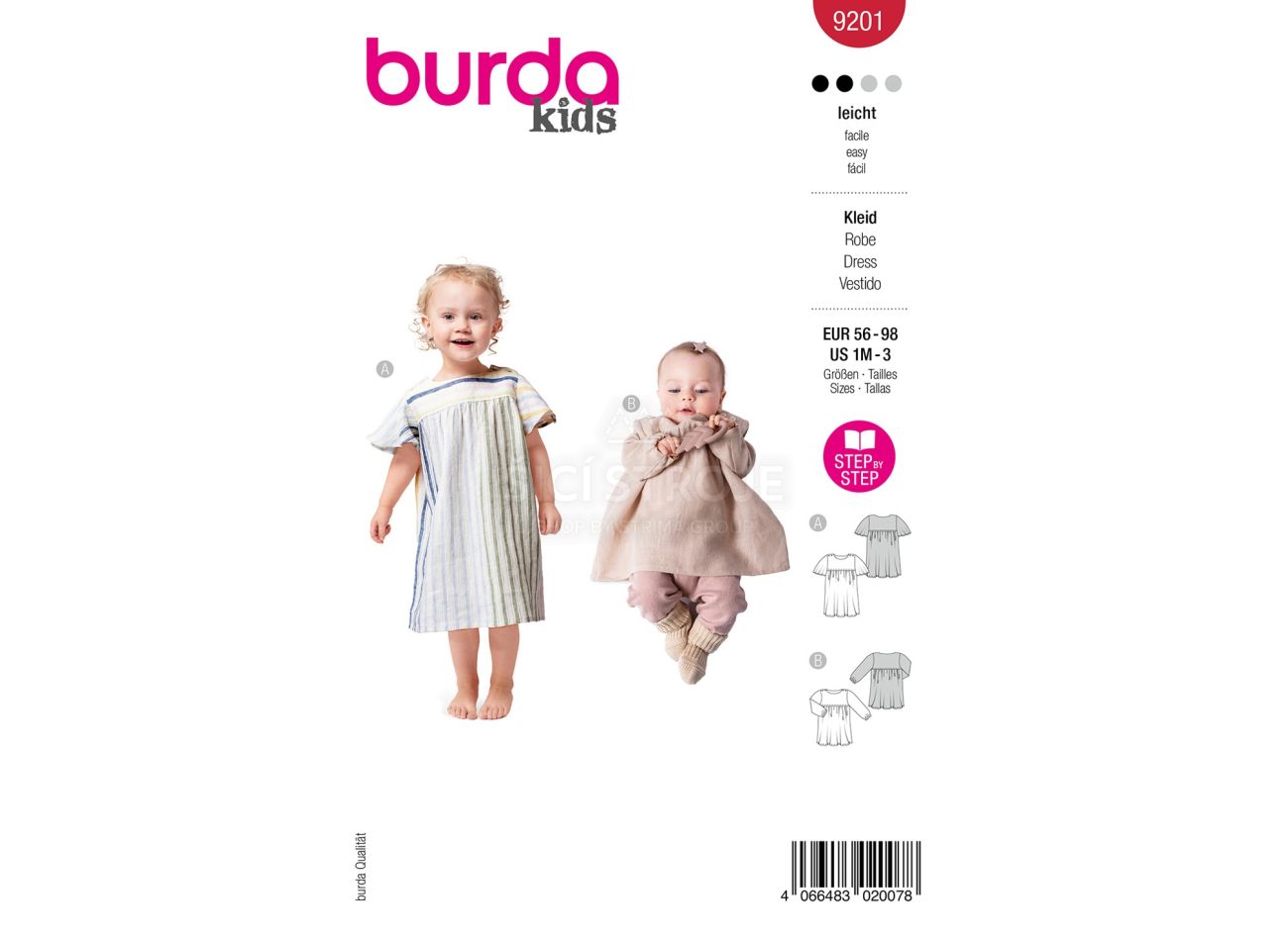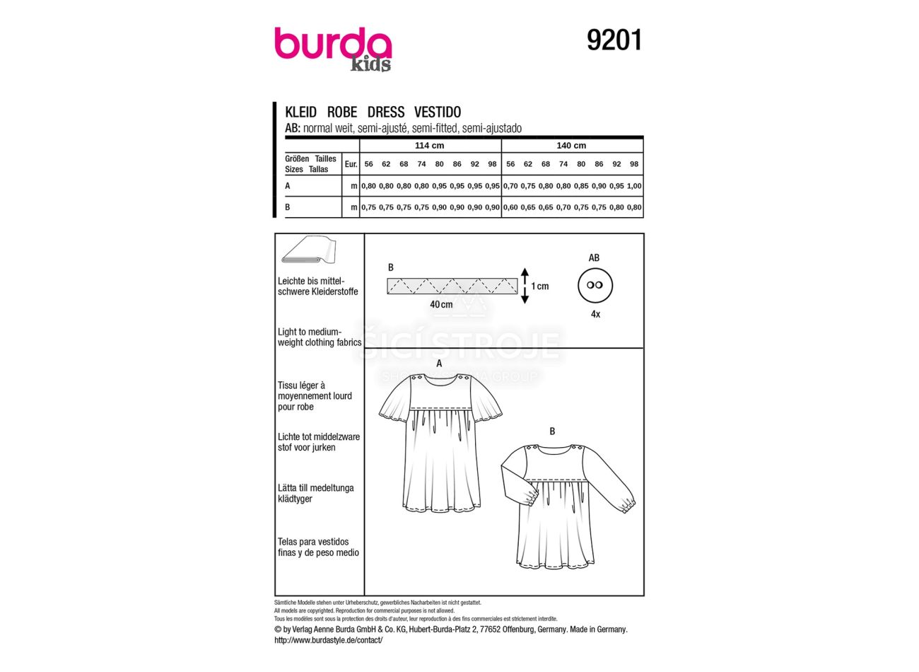 Strih Burda 9201 - Detské šaty s elastickým pásom