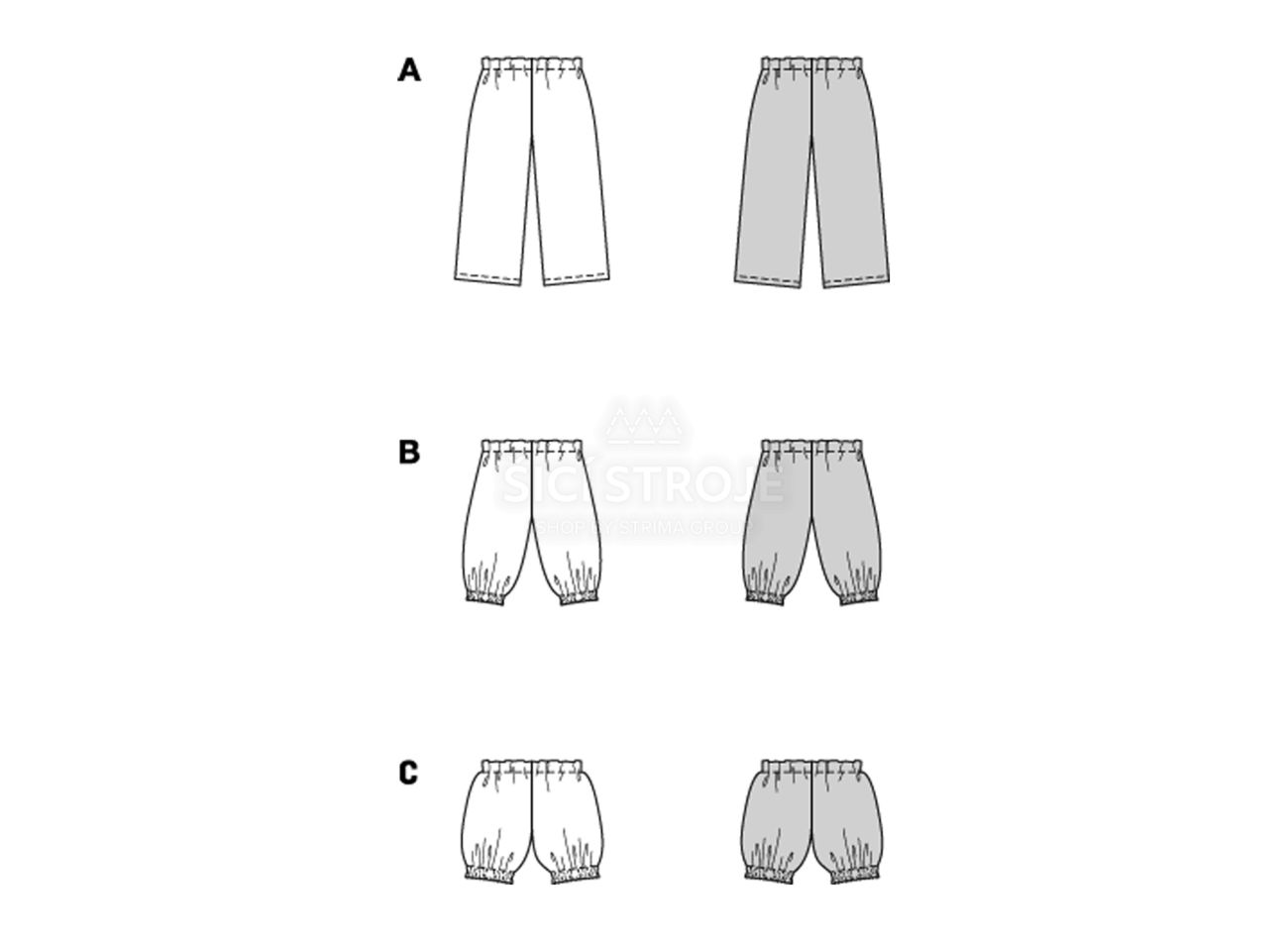 Strih Burda 9202 - Detské bavlnené nohavice a kraťasy s elastickým pásom
