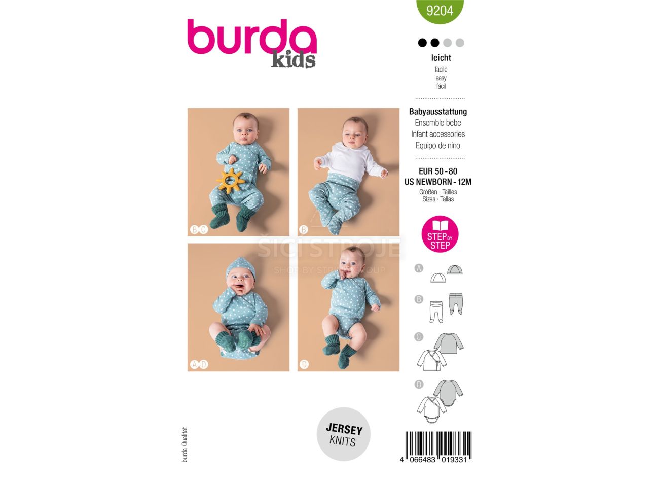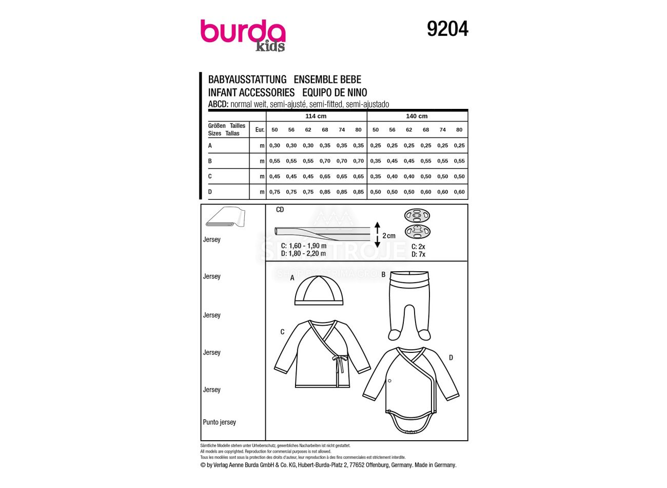 Strih Burda 9204 - Detská čiapka, nohavice a zavinovacia mikina