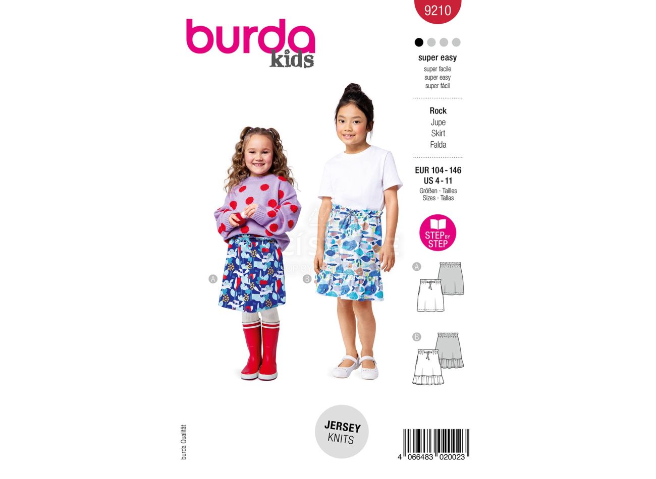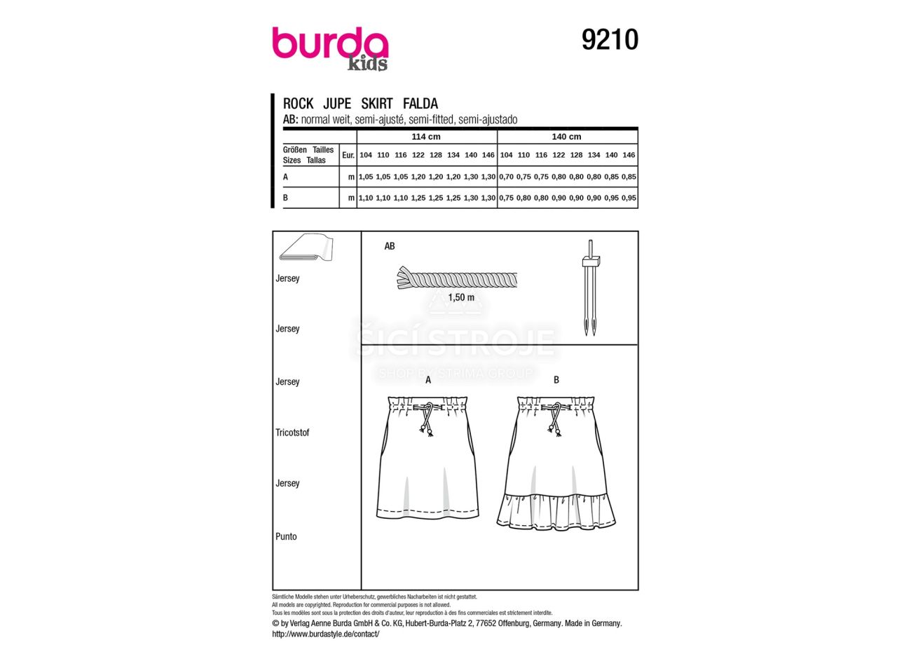 Strih Burda 9210 - Dievčenské minisukne so sťahovacou šnúrkou v páse