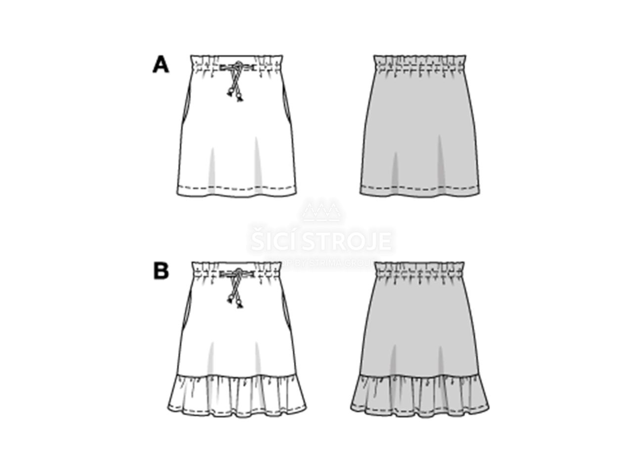 Strih Burda 9210 - Dievčenské minisukne so sťahovacou šnúrkou v páse..