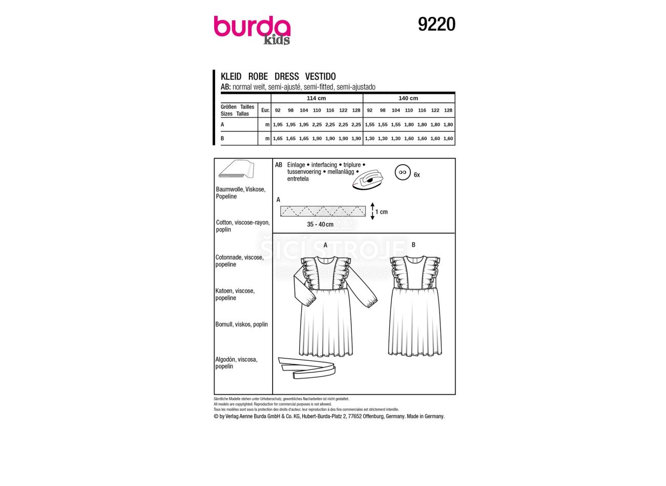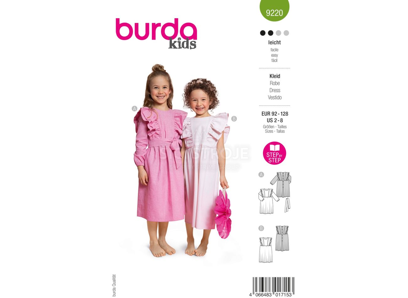 Strih Burda 9220 - Dievčenské slávnostné šaty s volánikmi