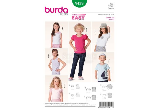 Strih Burda 9439 - Detské jednoduché tielko, tričko