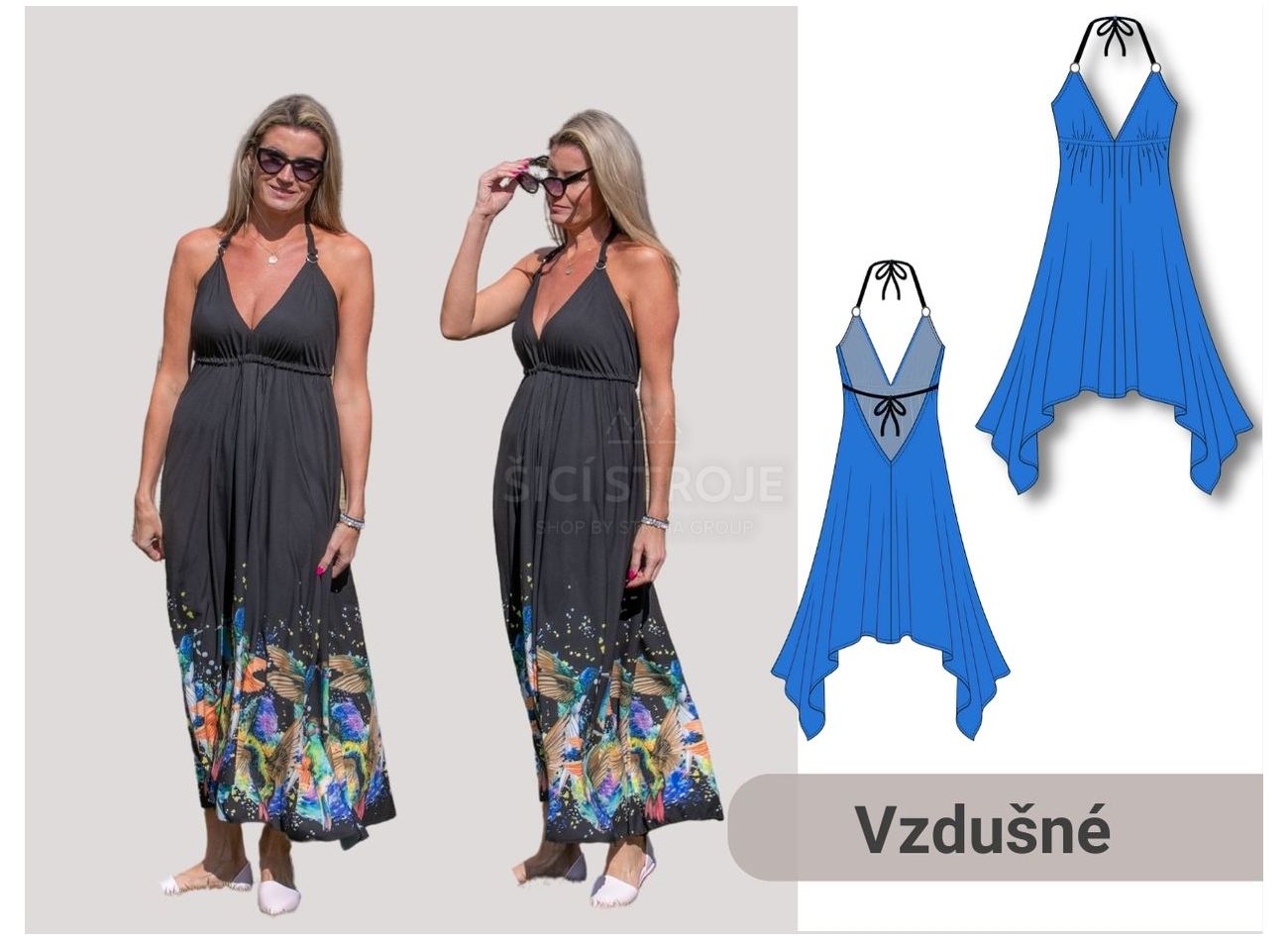 Strih na letné šaty dostupný v univerzálnych veľkostiach...