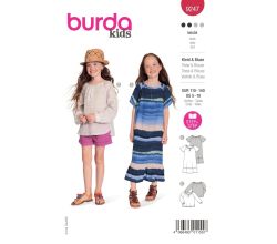 Strih Burda 9216 - Dievčenské šaty s mašľou a blúzka s golierom Peter Pan..