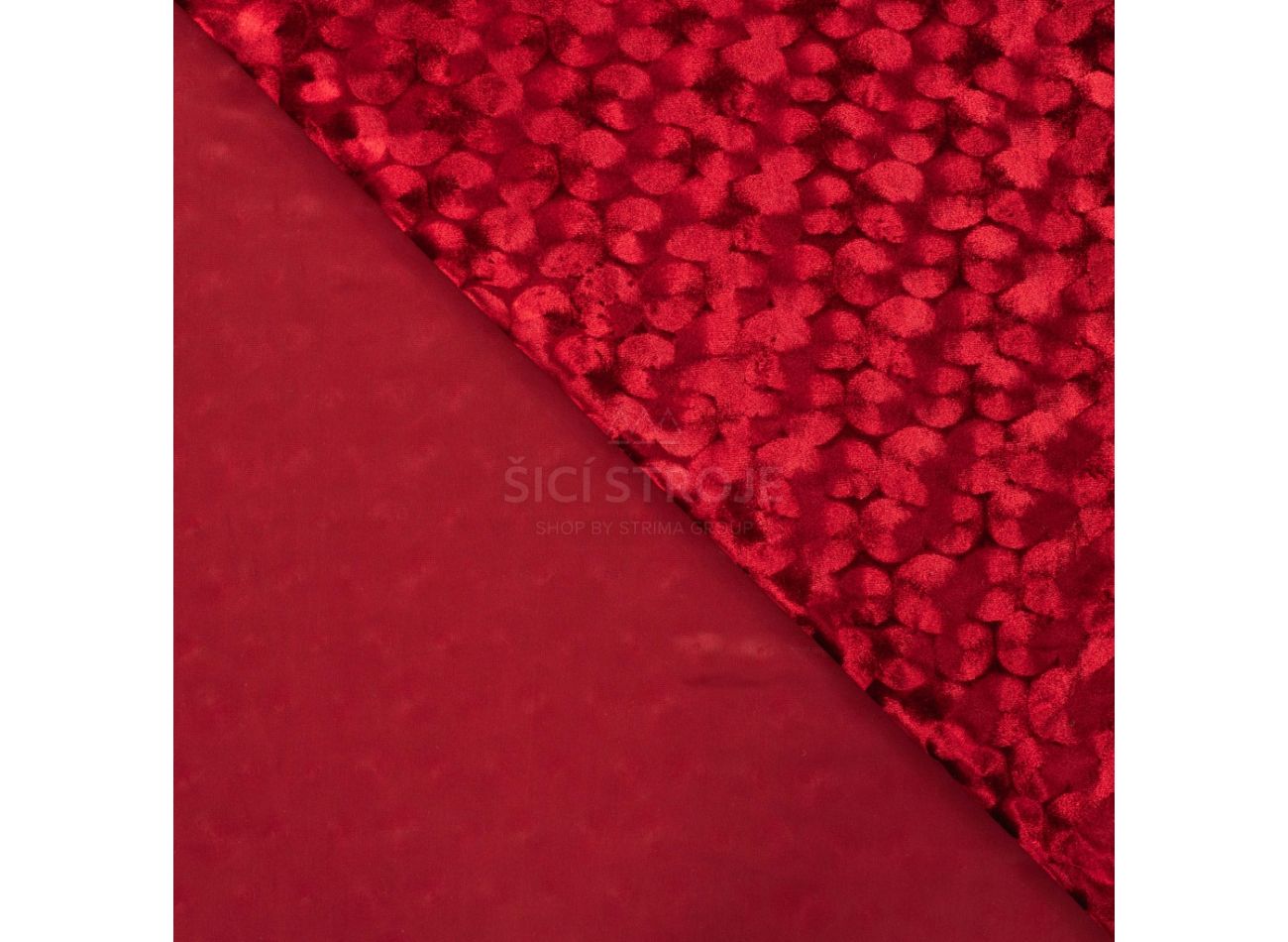 Velour Embossed, 90% polyester, 10% elastan, minimálna šírka 145 cm, gramáž 250 g/m2, farba red