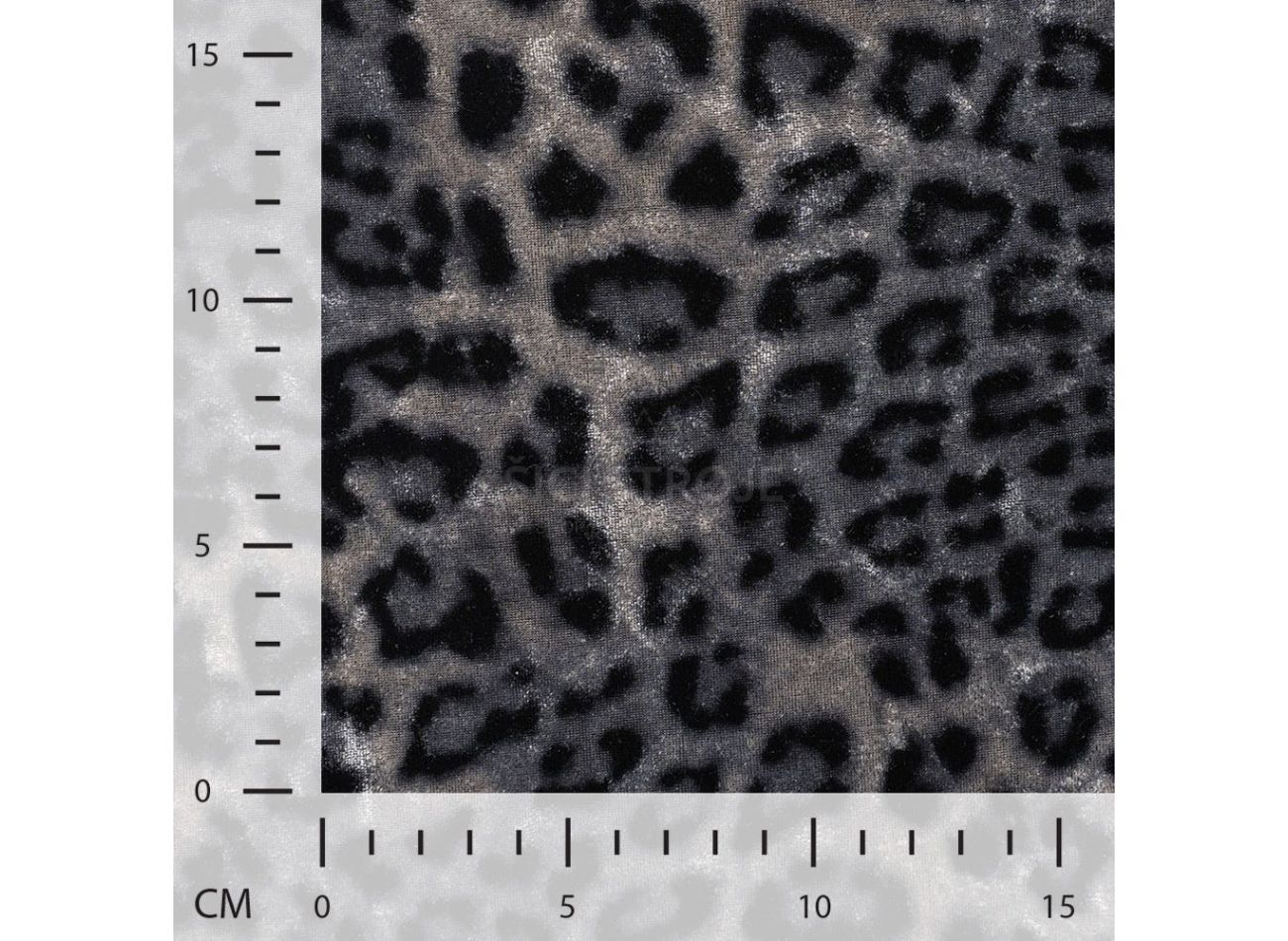Velour Print, 95% polyester, 5% elastan, minimálna šírka 145 cm, gramáž 200 g/m2, vzor panther, farba silver grey