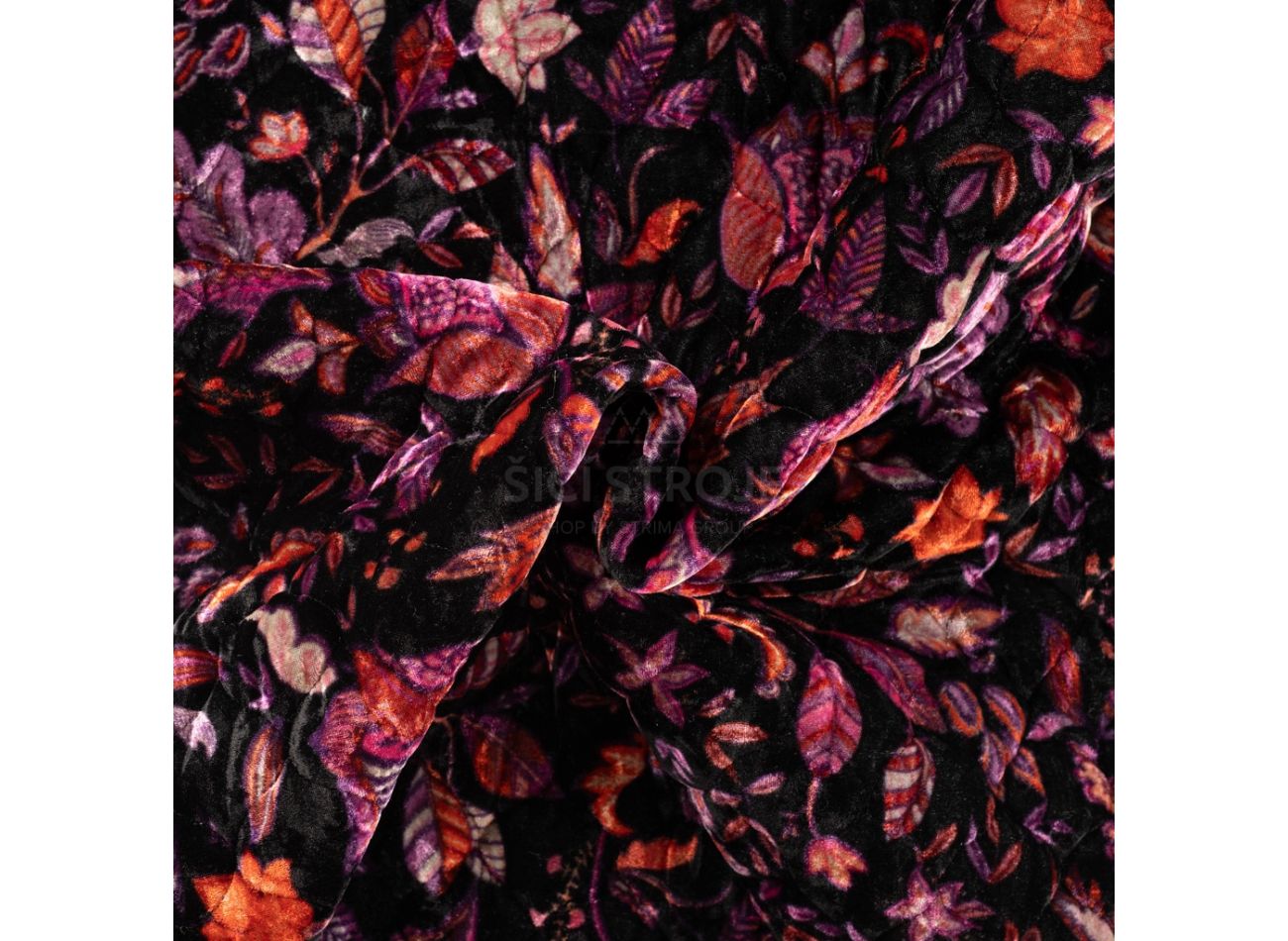 Velour Quilt Karola Print, 60% polyester, 35% nylon, 5% elastan, minimálna šírka 130 cm, gramáž 355 g/m2, vzor flowers, farba fuchsia