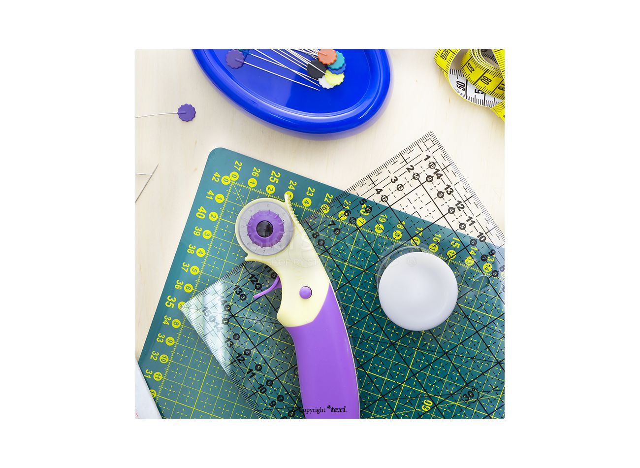 Súprava výrazne uľahčuje rezanie a umožňuje presné meranie rezaných prvkov. Sada vo veľkosti S určená pre malé projekty a ľudí, ktorí sa zaoberajú šitím a patchworkom.