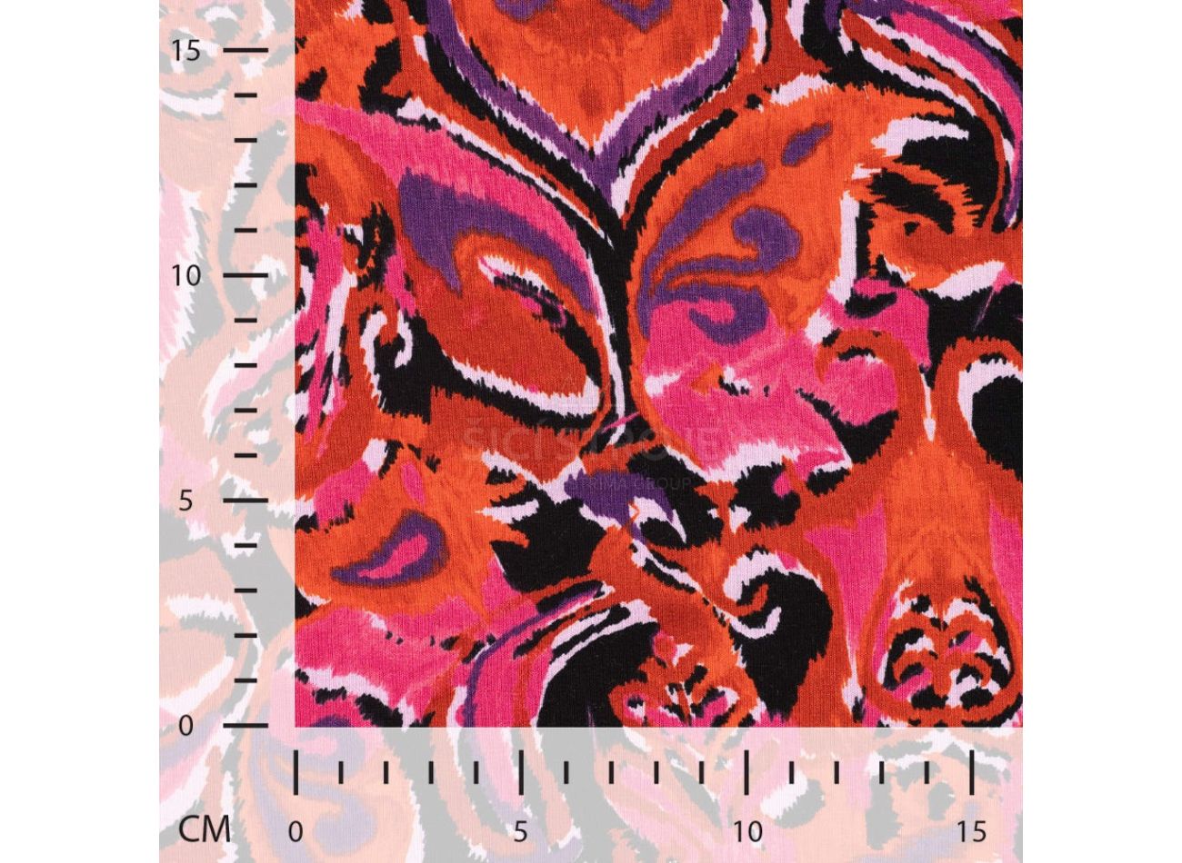Viscose/EA Jersey Print, 95% viskóza, 5% elastan, minimálna šírka 145 cm, gramáž 220 g/m2, vzor gothic, farba orange