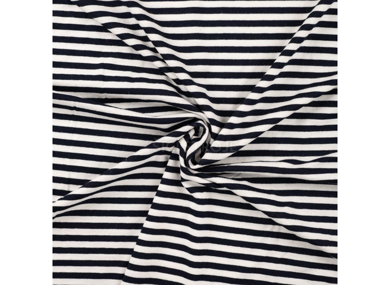 Viscose/EA Stripe, 96% viskóza, 4% elastan, minimálna šírka 145 cm, gramáž 200 g/m2, farba navy 5 mm