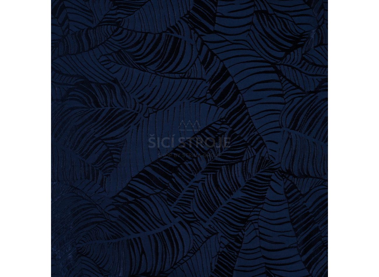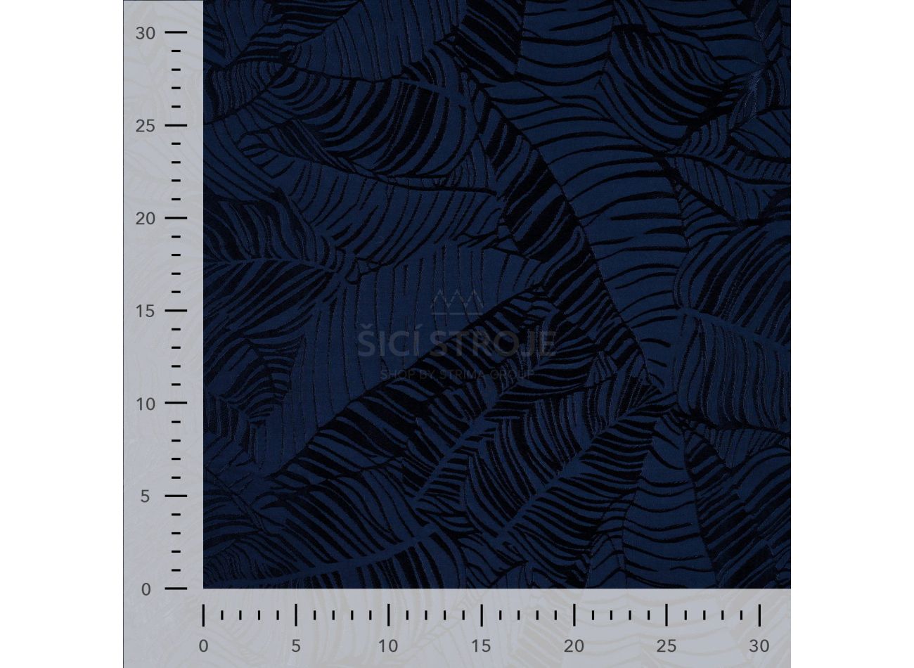 Viscose Jacquard Leaves, 65% viskóza, 35% viskóza, minimálna šírka 145 cm, gramáž 122 g/m2, vzor leaves, farba navy
