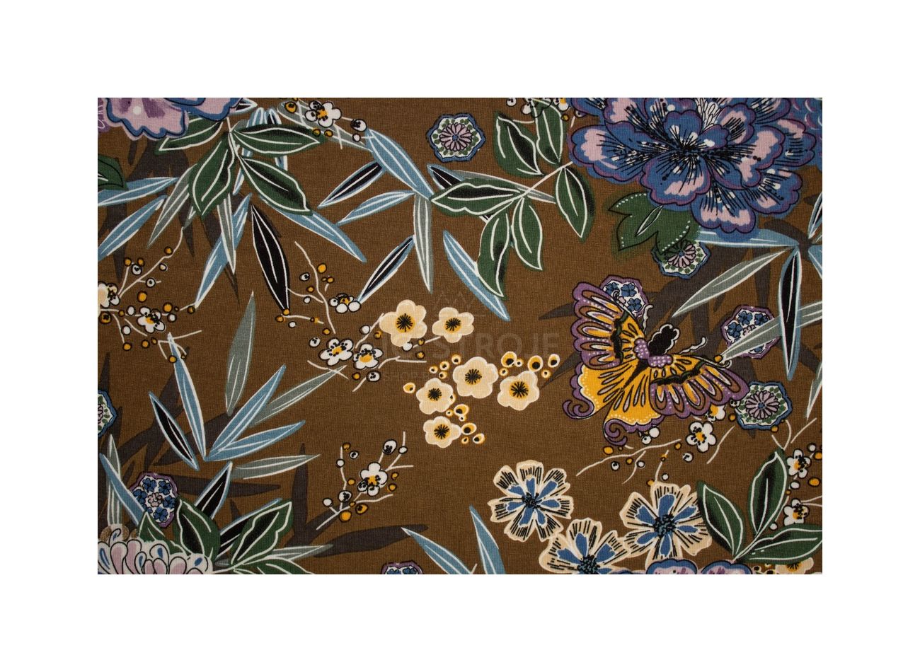 Viscose/Sp Jersey Print, 95% viskóza, 5% elastan, minimálna šírka 145 cm, gramáž 200 g/m2, vzor flowers, farba mauive