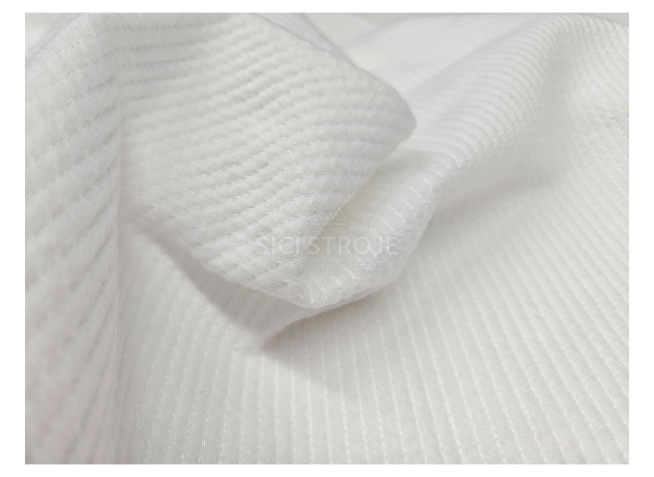 Netkaná textília spevnená dvojosnovným prepletom, gramáž 210 g/m2, šírka 160 cm, zloženie 100% PES.