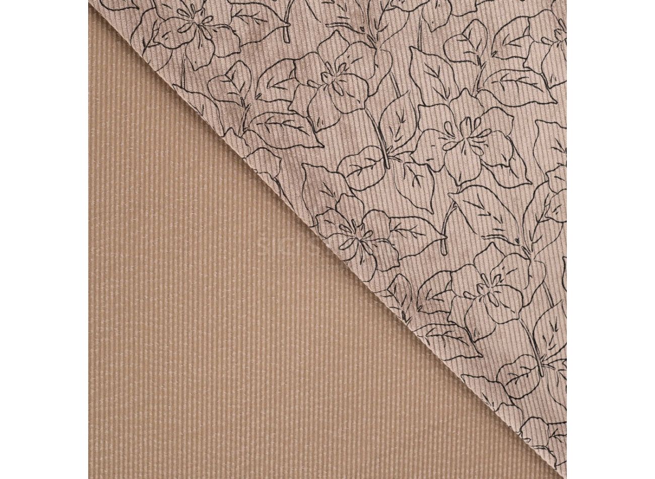 Washed Corduroy Printed - Flowers, Camel