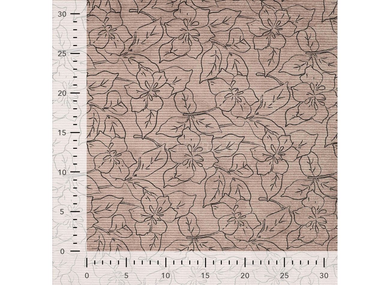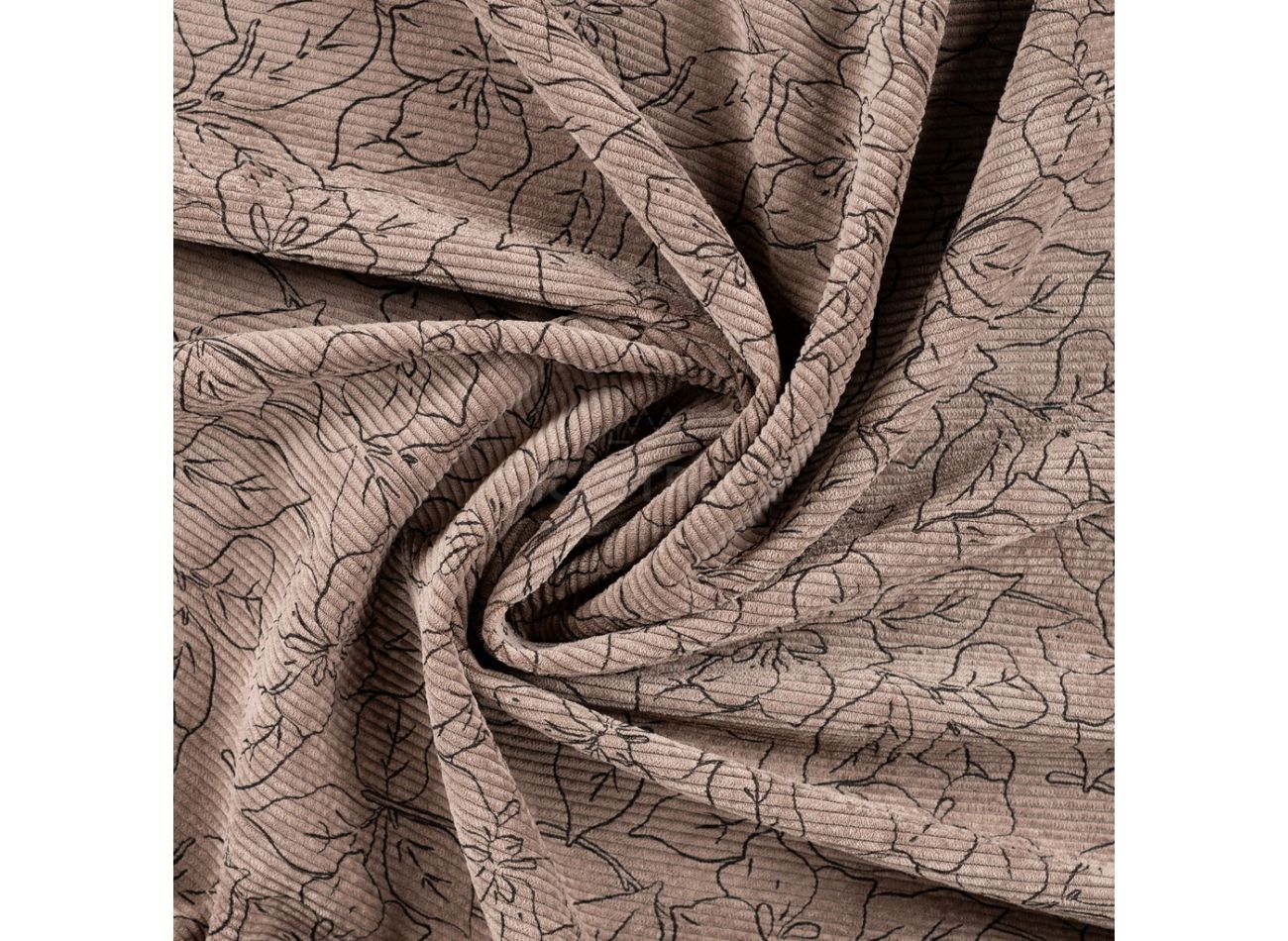 Washed Corduroy Printed, 85% polyester, 12% polyamid, 3% elastan, minimálna šírka 145 cm, gramáž 340 g/m2, vzor flowers, farba camel