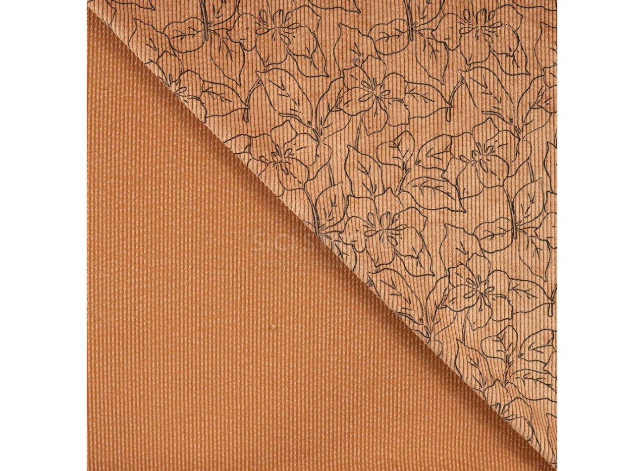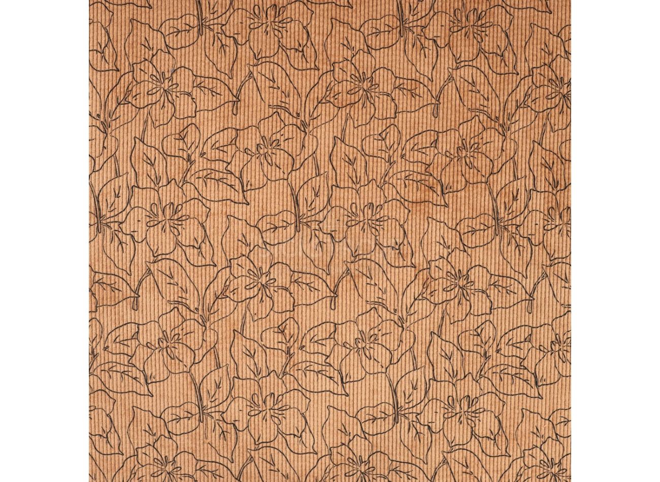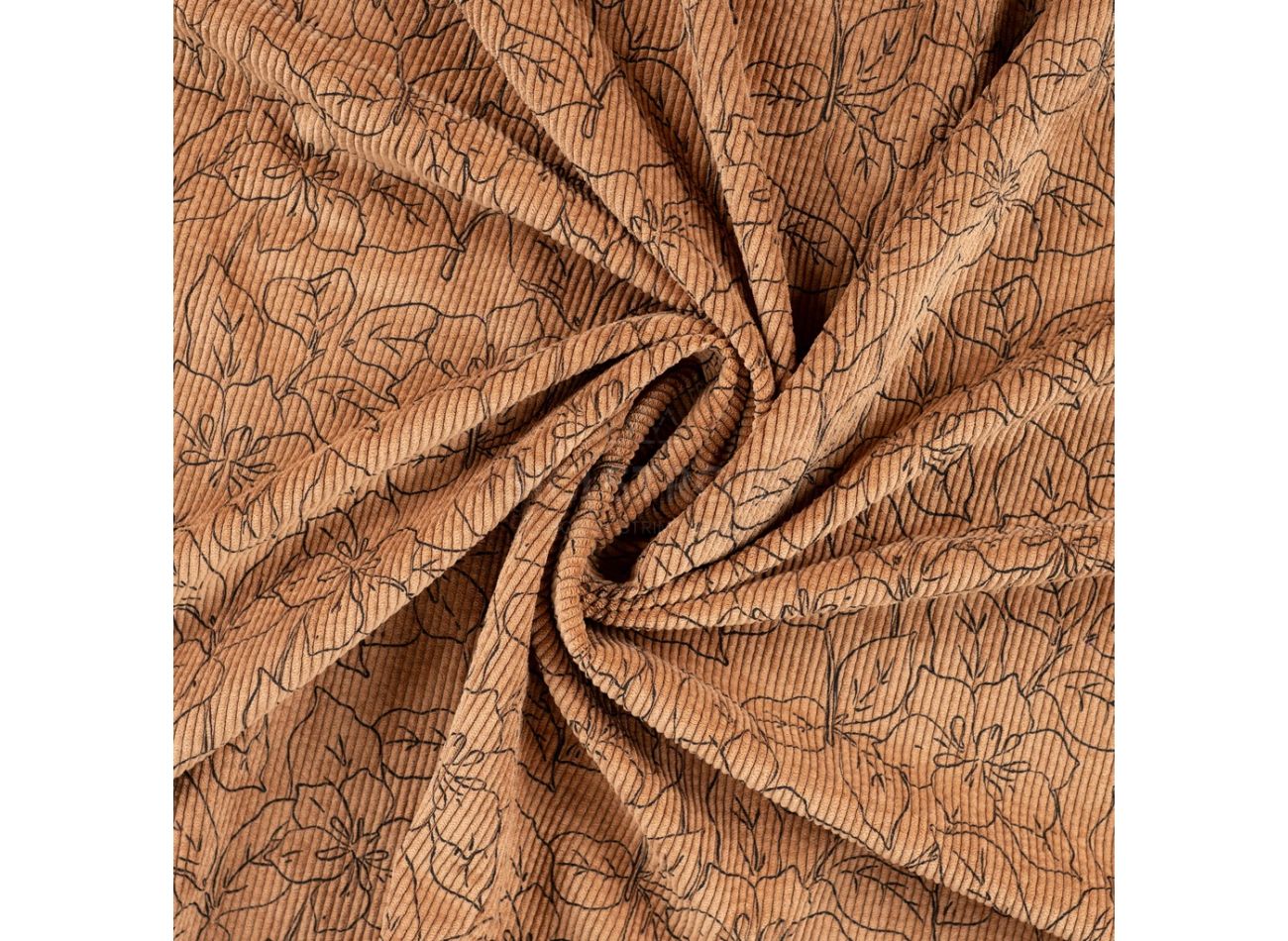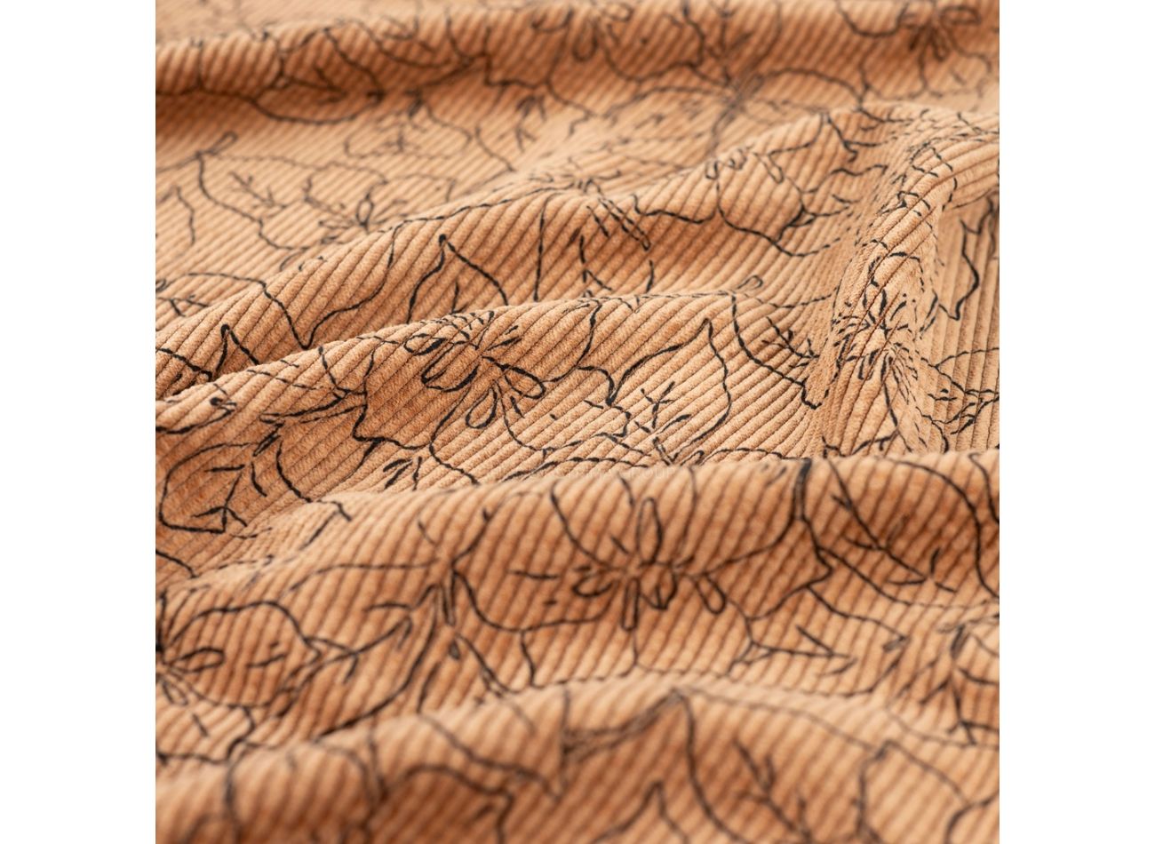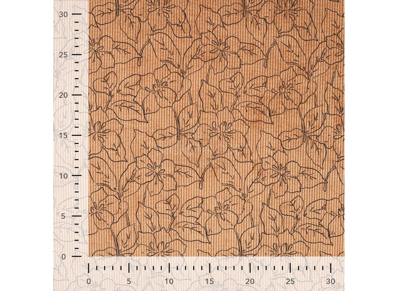 Washed Corduroy Printed, 85% polyester, 12% polyamid, 3% elastan, minimálna šírka 145 cm, gramáž 340 g/m2, vzor flowers, farba stone