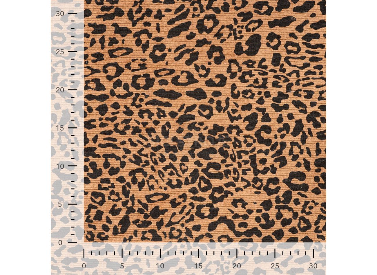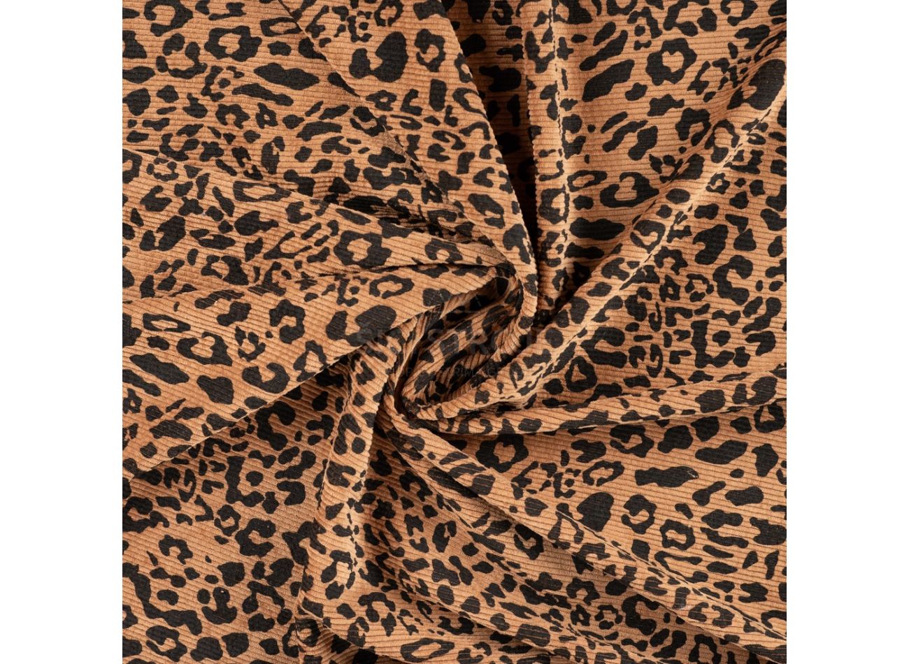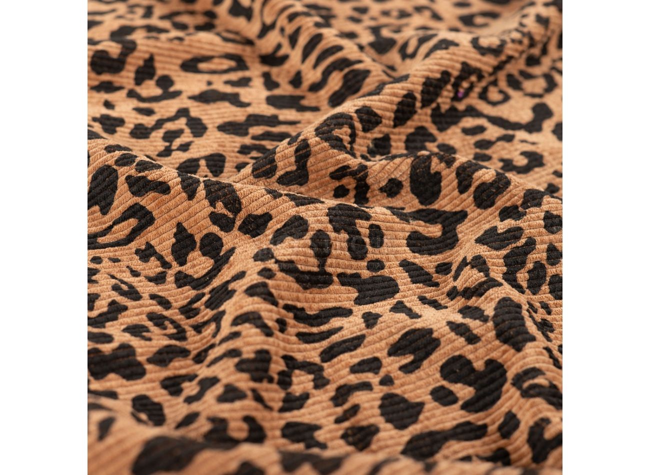 Washed Corduroy Printed, 85% polyester, 12% polyamid, 3% elastan, minimálna šírka 145 cm, gramáž 340 g/m2, vzor leopard, farba stone