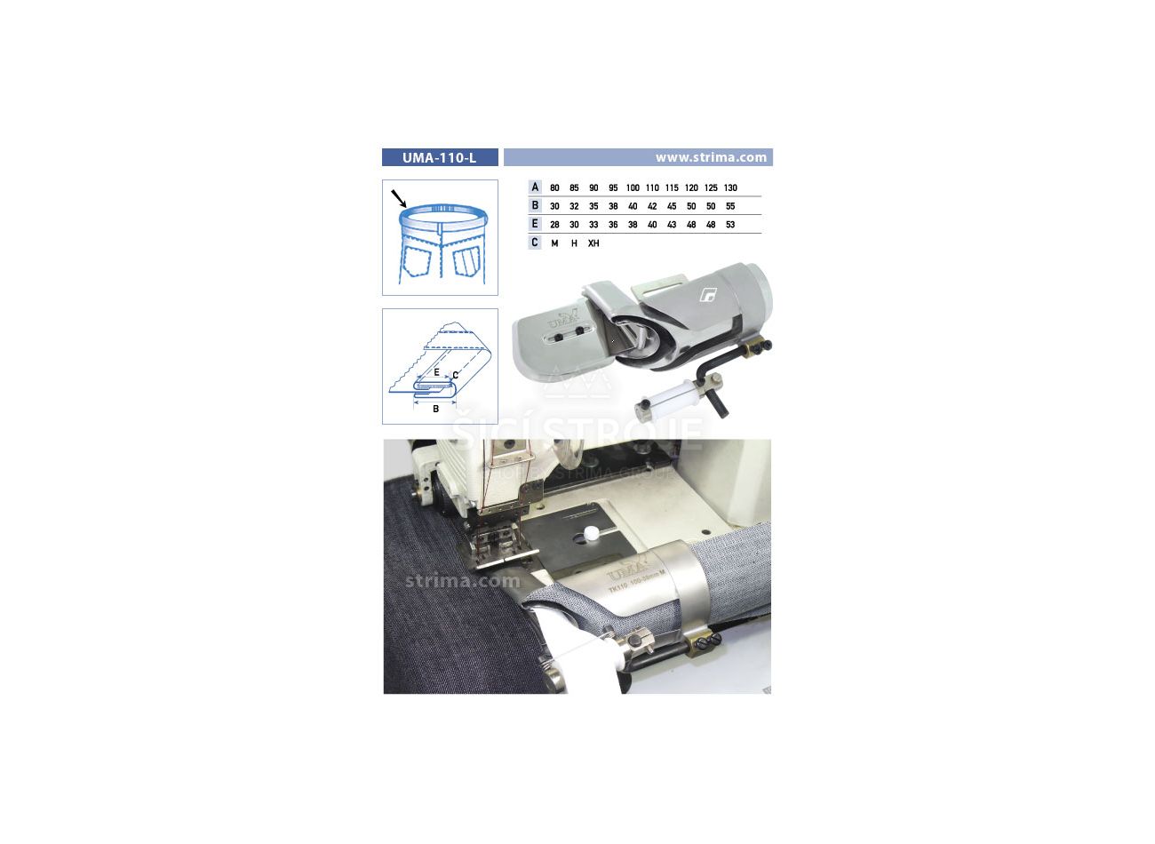 Lemovač na všívanie pásky pre šijacie stroje UMA-110-L 95/38/36 M